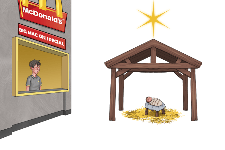 Think of eating a Big Mac at a newly opened McDonald's in Bethlehem. (Birth place of Jesus).