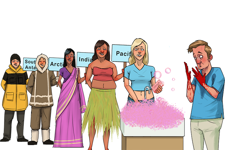 - Theme Guilt and Conscience - Macbeth is an experienced warrior and is used to killing but he comes back to his chambers badly shaken from murdering his king. Seized by deep revulsion he says the above quote to Lady Macbeth. Macbeth realises that his guilt is so great, it can never be washed away.